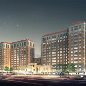 规划总用地面积45469m²,总建筑面积为164300m²。其中地上建筑面积77300m²,地下建筑面积约为87000m²。